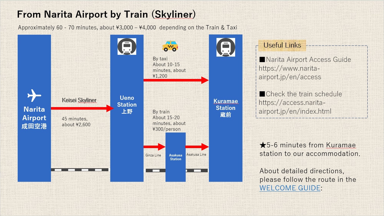 Located in Kuramae, an up-and-coming area next to Asakusa, you are able to stay in a quiet neighborhood, while still being able to reach all parts of Tokyo with minimal effort by train.